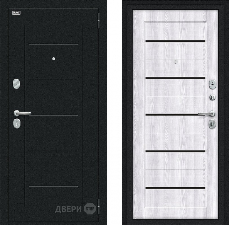 Входная металлическая Дверь Bravo Борн Букле черное/Riviera Ice 860х2050 мм