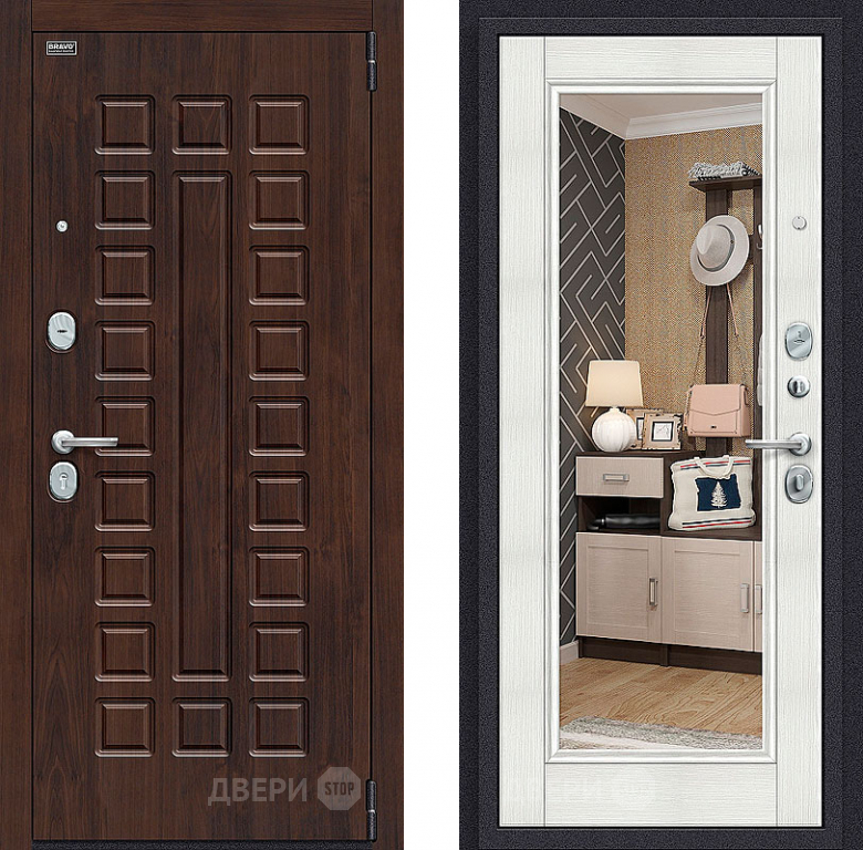 Входная металлическая Дверь Bravo Оптим Урбан с зеркалом Bianco Veralinga 860х2050 мм