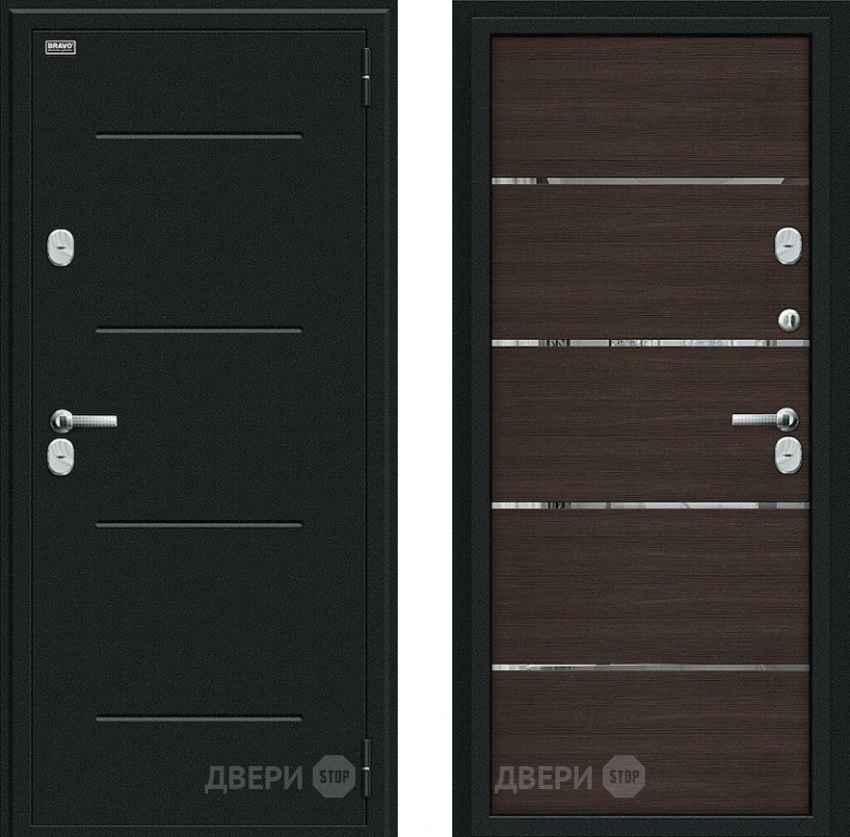 Входная металлическая Дверь Bravo Thermo Лайн Букле черное/Wenge Veralinga 860х2050 мм