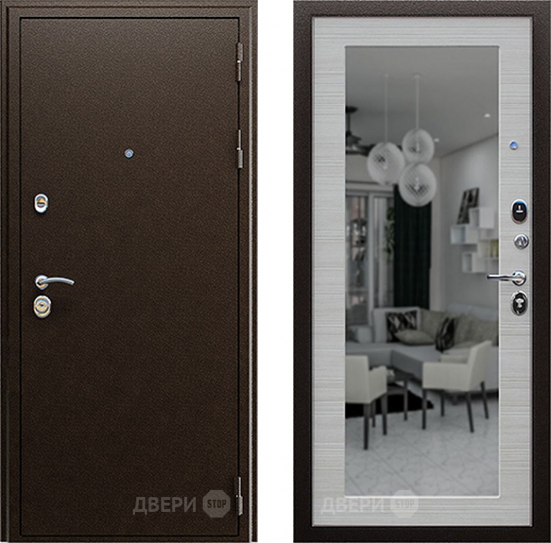 Входная металлическая Дверь АСД Спартак с зеркалом Акация светлая 860х2050 мм