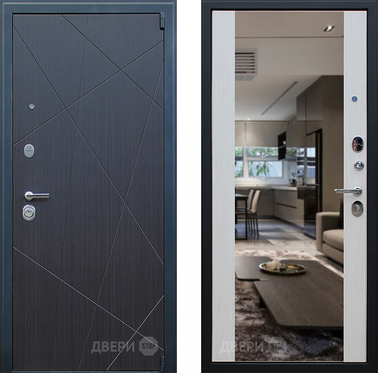 Входная металлическая Дверь АСД Вектор с зеркалом Лиственница белая 860х2050 мм