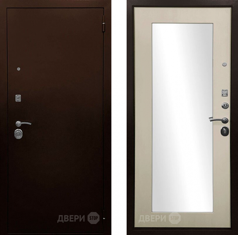 Входная металлическая Дверь Ратибор Оптима 3К зеркало Лиственница беж 860х2050 мм