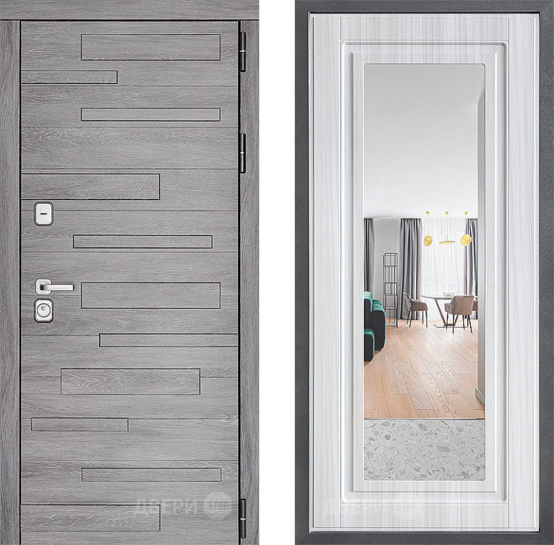 Входная Дверь Дверной континент ДК-10 ФЛЗ Зеркало Сандал белый 860x2050 мм