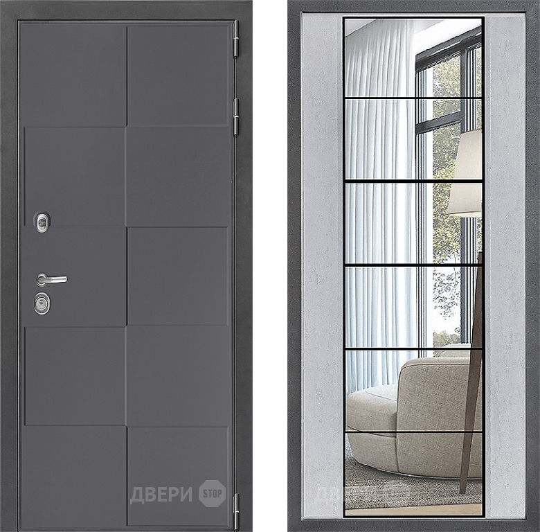Входная Дверь Дверной континент ДК-3/606 ФЛЗ-2 Зеркало Бетон светлый 860x2050 мм
