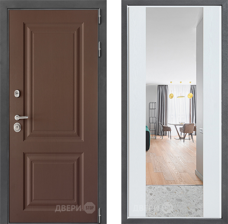 Входная Дверь Дверной континент ДК-3/729 ФЛЗ-1 Зеркало Белое дерево 960x2050 мм