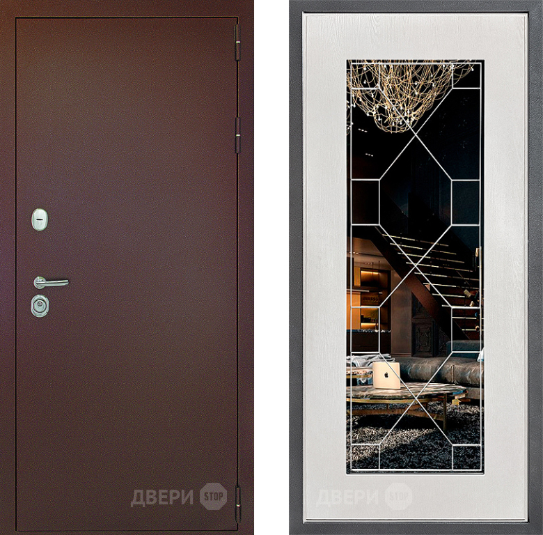Входная Дверь Дверной континент Рубикон Медь Дизайн ФЛ-Тиффани Зеркало Белое дерево 860x2050 мм