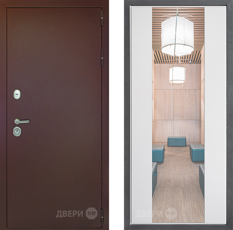 Входная Дверь Дверной континент Рубикон Медь Дизайн ФЛЗ-1 Зеркало Белый софт 960x2050 мм