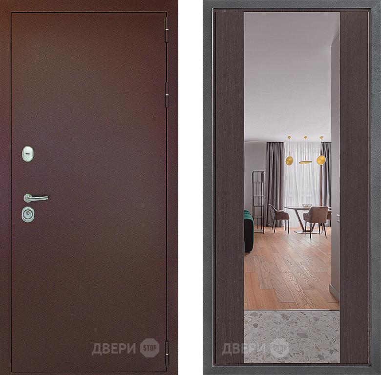 Входная Дверь Дверной континент Рубикон Медь Дизайн ФЛЗ-1 Зеркало Венге 960x2050 мм
