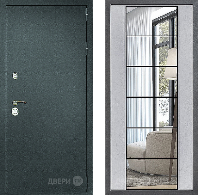 Входная Дверь Дверной континент Рубикон Серебро Дизайн ФЛЗ-2 Зеркало Бетон светлый 960x2050 мм