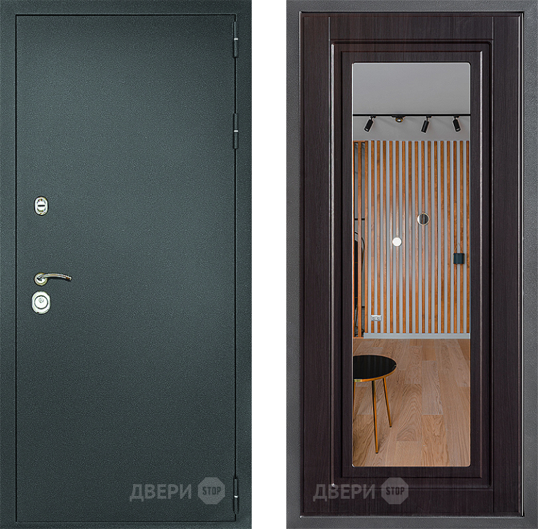 Входная Дверь Дверной континент Рубикон Серебро Дизайн ФЛЗ Зеркало Венге 960x2050 мм