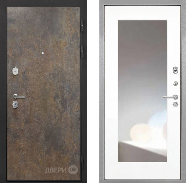 Входная Дверь Интекрон (INTECRON) Гектор Гранж ФЛЗ-120-М Зеркало Белый матовый 960x2050 мм