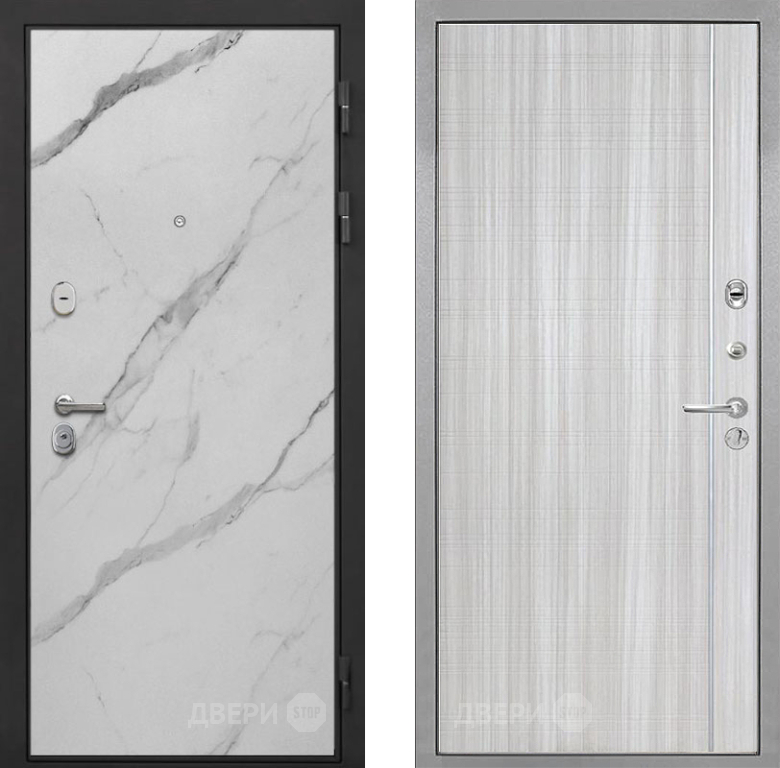 Входная Дверь Интекрон (INTECRON) Гектор Мрамор Арктик В-07 с молдингом Сандал белый 860x2050 мм