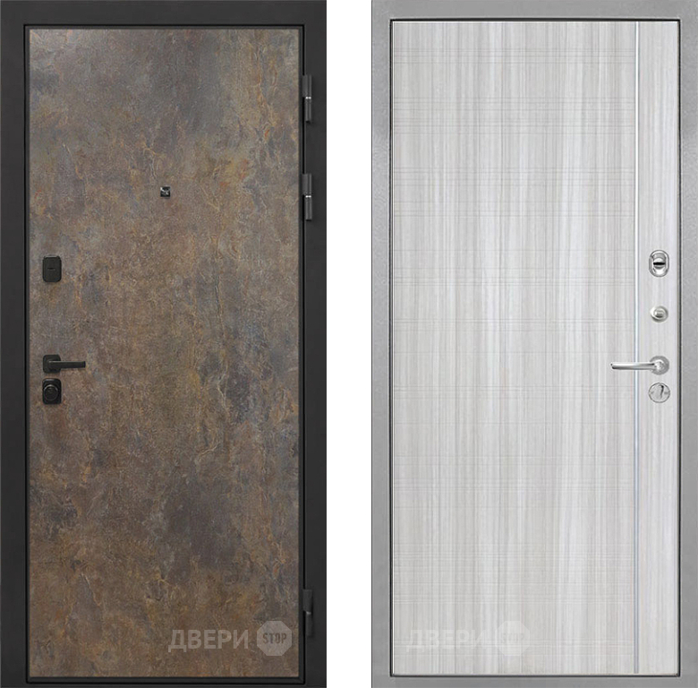 Входная Дверь Интекрон (INTECRON) Профит Black Гранж В-07 с молдингом Сандал белый 860x2050 мм