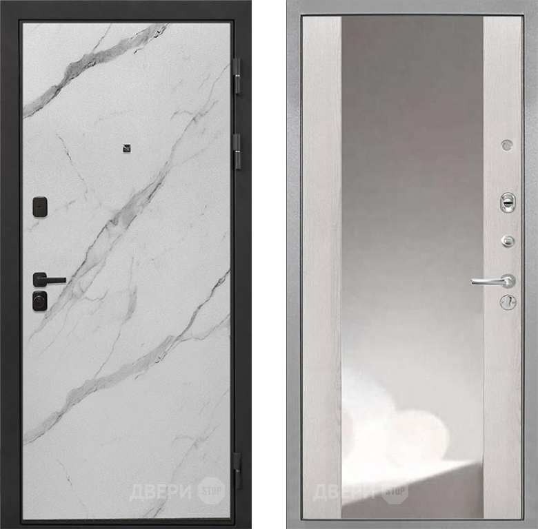 Входная Дверь Интекрон (INTECRON) Профит Black Мрамор Арктик ФЛЗ-516 Зеркало Сосна белая 960x2050 мм