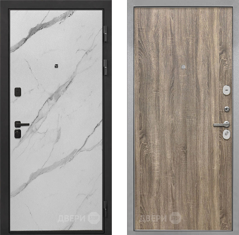 Входная Дверь Интекрон (INTECRON) Профит Black Мрамор Арктик Гладкая Дуб турин 860x2050 мм