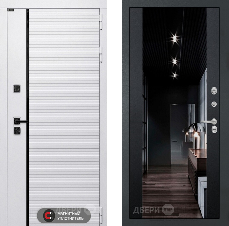 Входная Дверь Лабиринт (LABIRINT) Royal Зеркало Максимум с тонировкой Черный кварц 860x2050 мм