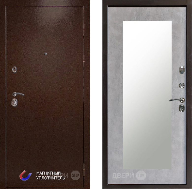 Входная Дверь Престиж Медь Зеркло Пастораль Бетон светлый 860x2050 мм