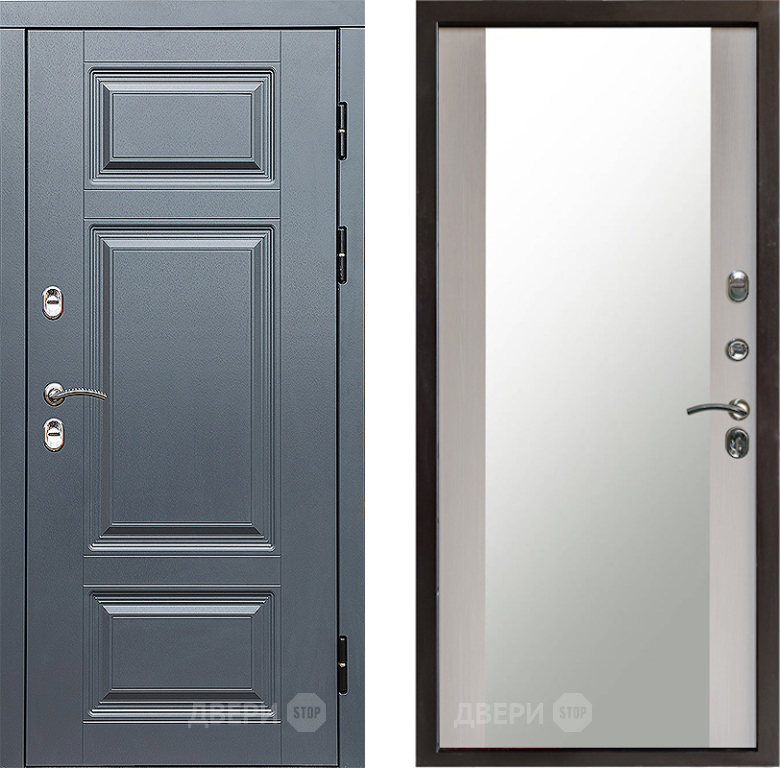 Входная Дверь Престиж TERMO с терморазрывом Премиум Грэй Зеркало Лиственница белая 860x2050 мм