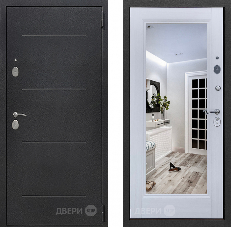 Входная металлическая Дверь Престиж 100 с зеркалом Шелк/Лиственница белая 860х2050 мм