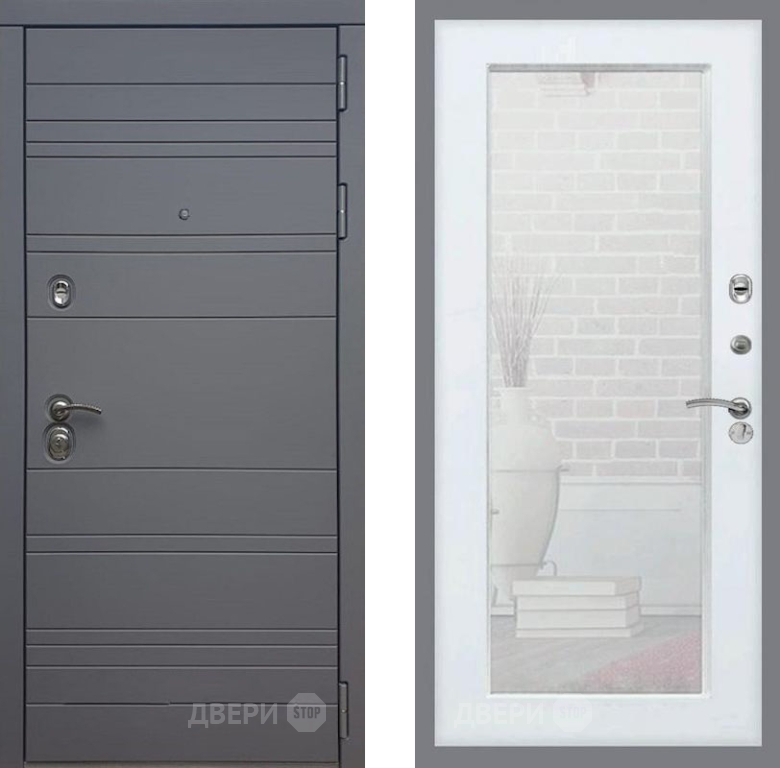 Входная Дверь Рекс (REX) 14 силк титан Зеркало Пастораль Белый ясень 960x2050 мм