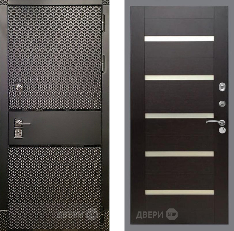 Входная Дверь Рекс (REX) 15 Черный Кварц СБ-14 стекло белое венге поперечный 960x2050 мм