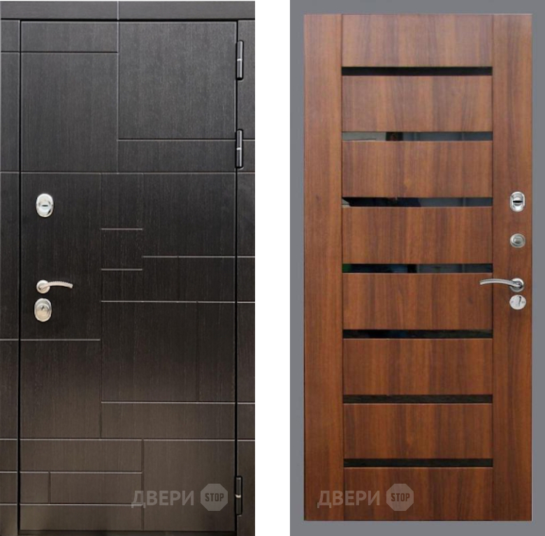 Входная Дверь Рекс (REX) 20 СБ-14 стекло черное Орех бренди 860x2050 мм