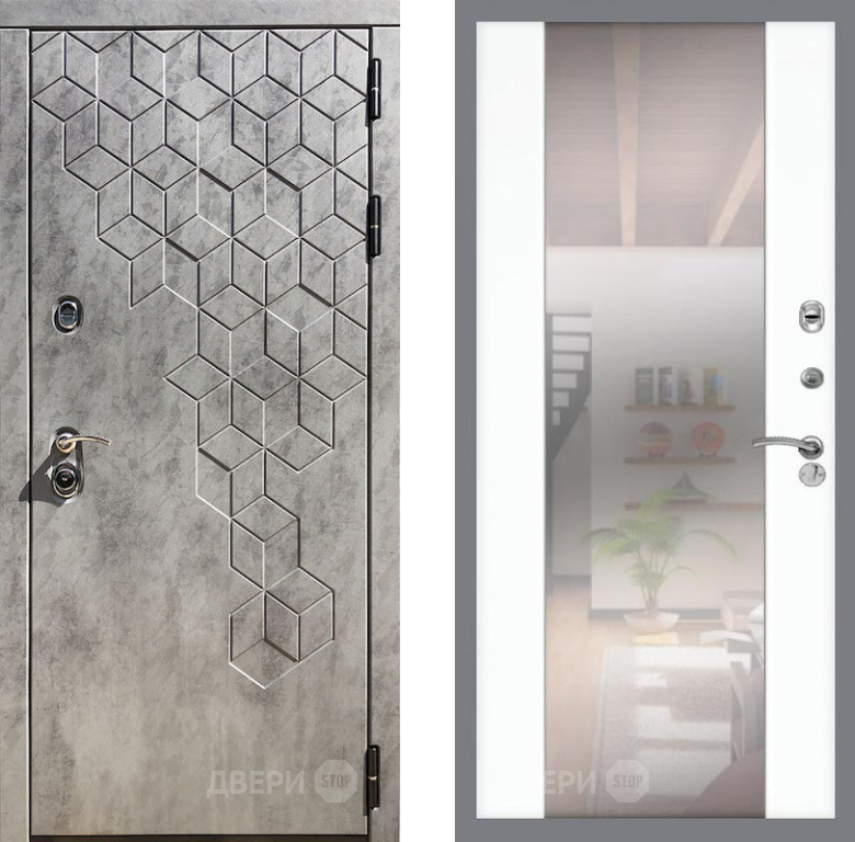 Входная Дверь Рекс (REX) 23 СБ-16 Зеркало Силк Сноу 860x2050 мм