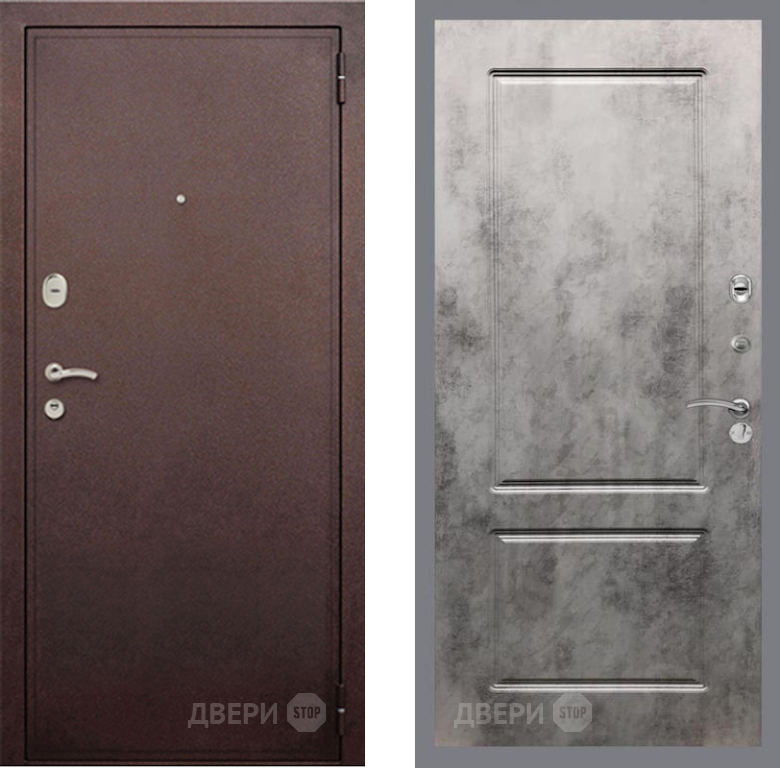 Входная Дверь Рекс (REX) 2 Медный Антик FL-117 Бетон темный 860x2050 мм