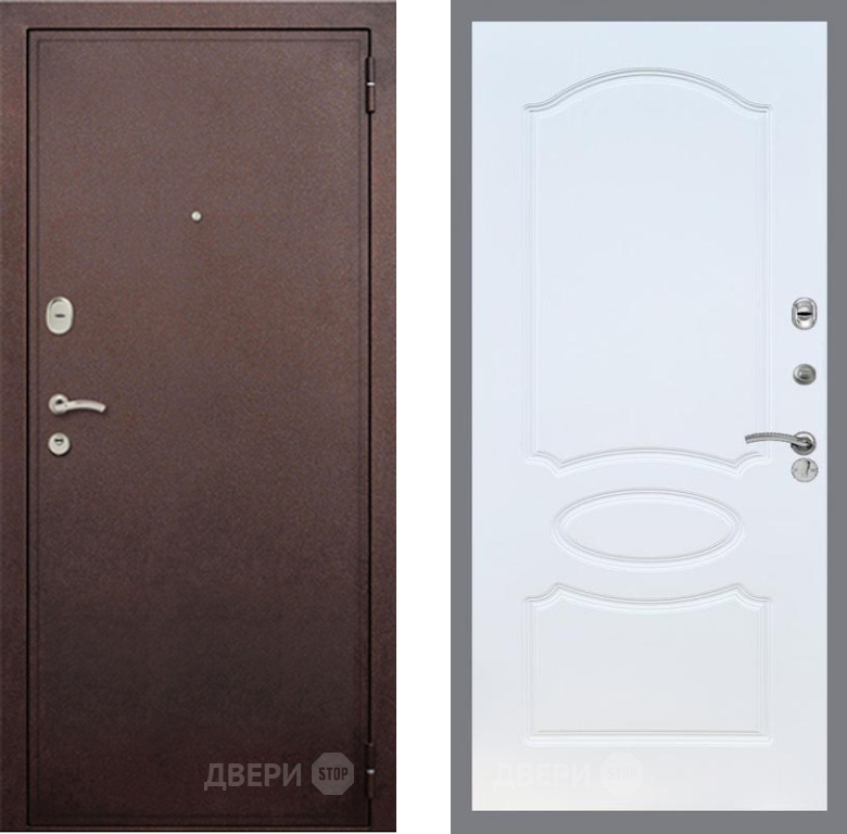 Входная Дверь Рекс (REX) 2 Медный Антик FL-128 Белый ясень 960x2050 мм