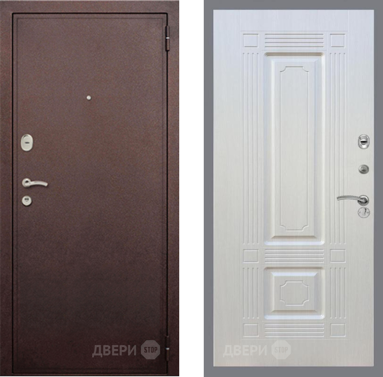 Входная Дверь Рекс (REX) 2 Медный Антик FL-2 Лиственница беж 860x2050 мм
