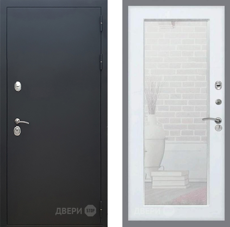 Входная Дверь Рекс (REX) 5 Черный Муар Зеркало Пастораль Силк Сноу 960x2050 мм