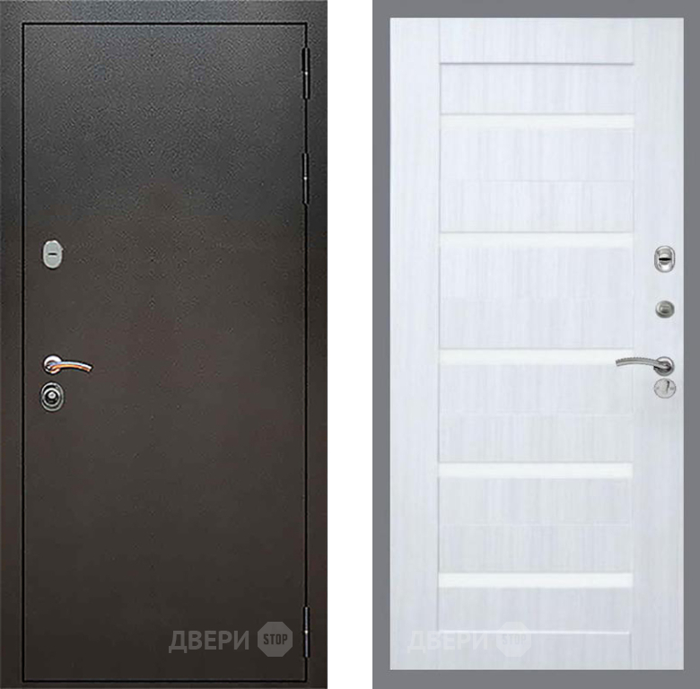 Входная Дверь Рекс (REX) 5 Серебро Антик СБ-14 стекло белое Сандал белый 860x2050 мм