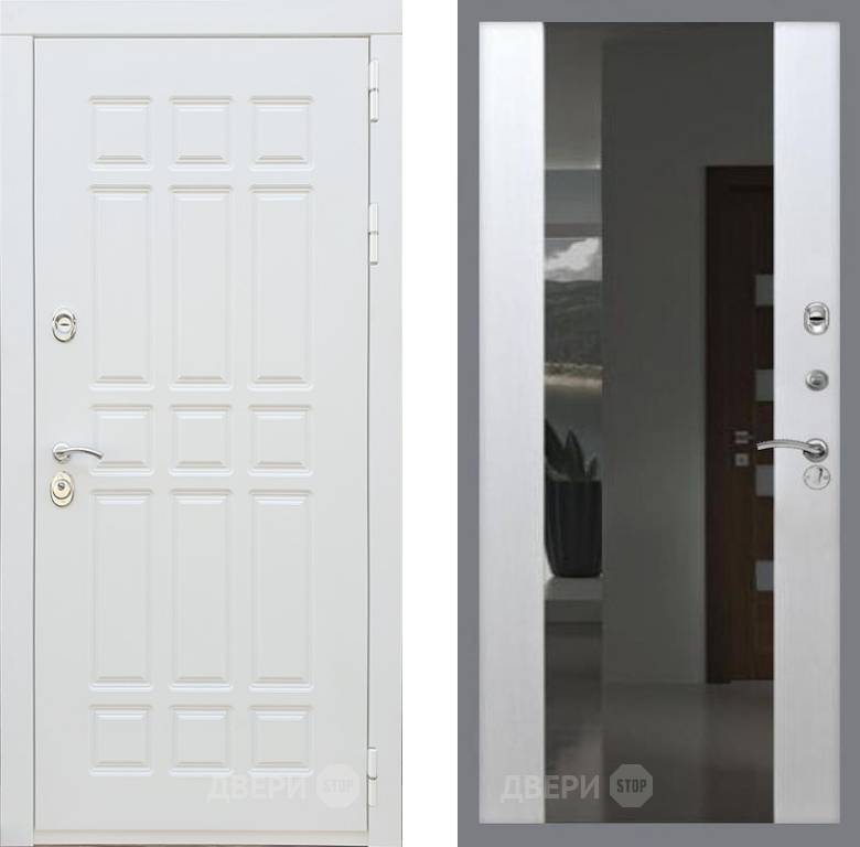 Входная Дверь Рекс (REX) 8 Силк Сноу СБ-16 Зеркало Белый ясень 960x2050 мм