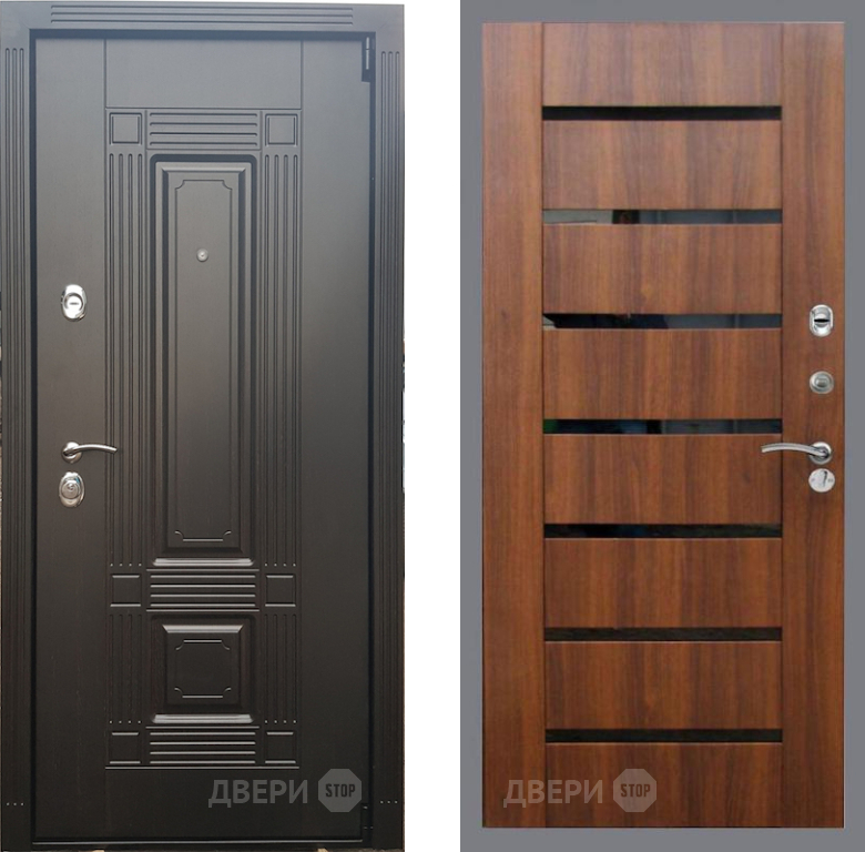Входная Дверь Рекс (REX) 9 СБ-14 стекло черное Орех бренди 860x2050 мм