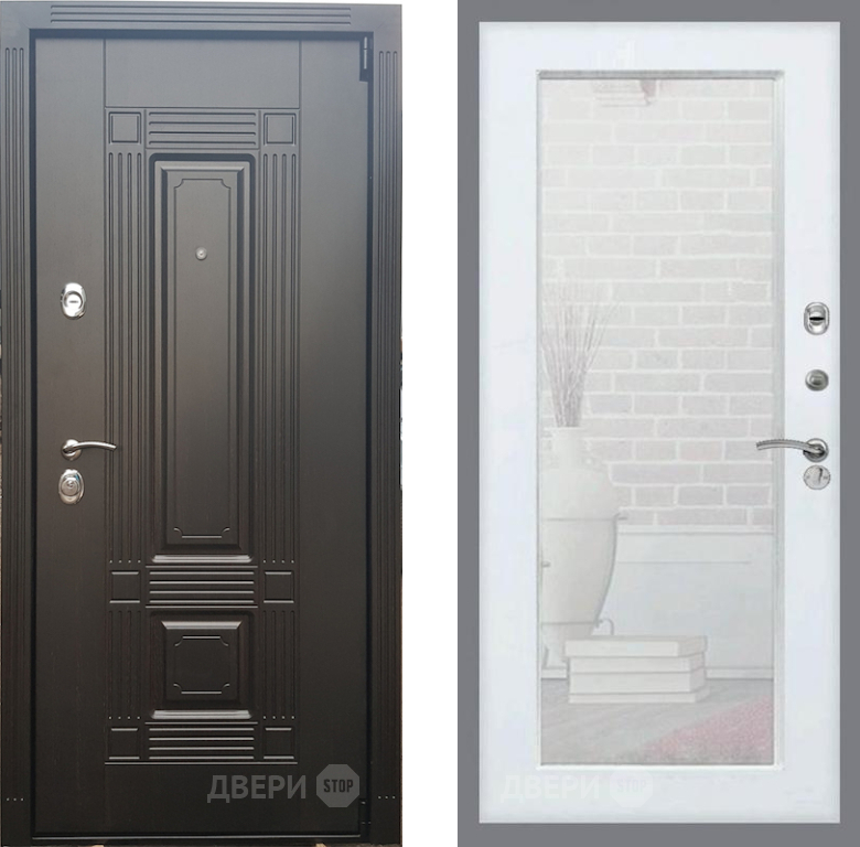 Входная Дверь Рекс (REX) 9 Зеркало Пастораль Белый ясень 960x2050 мм