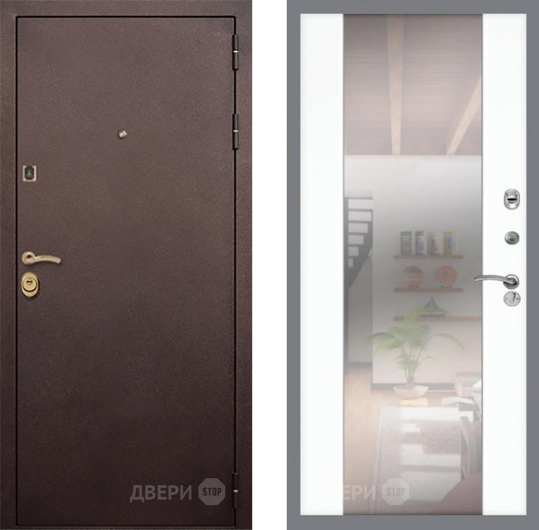 Входная Дверь Рекс (REX) Лайт 3К СБ-16 Зеркало Силк Сноу 860x2050 мм
