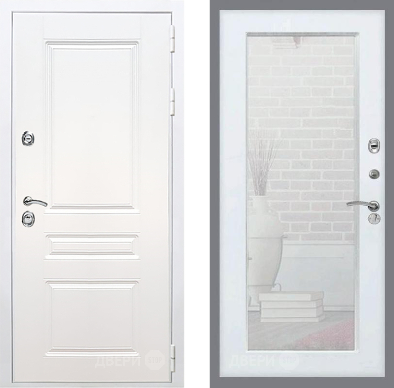 Входная Дверь Рекс (REX) Премиум-н Силк Сноу Зеркало Пастораль Силк Сноу 960x2050 мм
