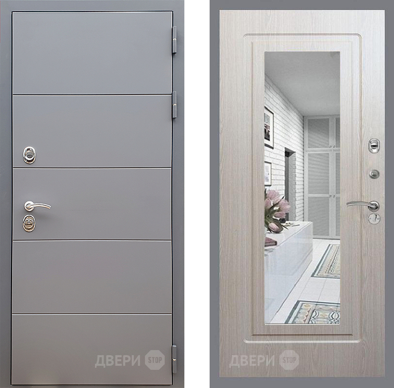 Входная Дверь Стоп АРТ ГРАФИТ Зеркало ФЛ-120 Беленый дуб 960x2050 мм