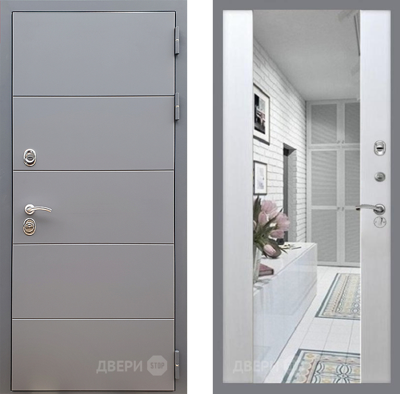 Входная Дверь Стоп АРТ ГРАФИТ Зеркало СБ-16 Лиственница беж 960x2050 мм