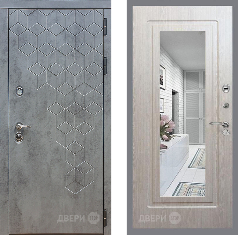 Входная Дверь Стоп БЕТОН Зеркало ФЛ-120 Беленый дуб 960x2050 мм