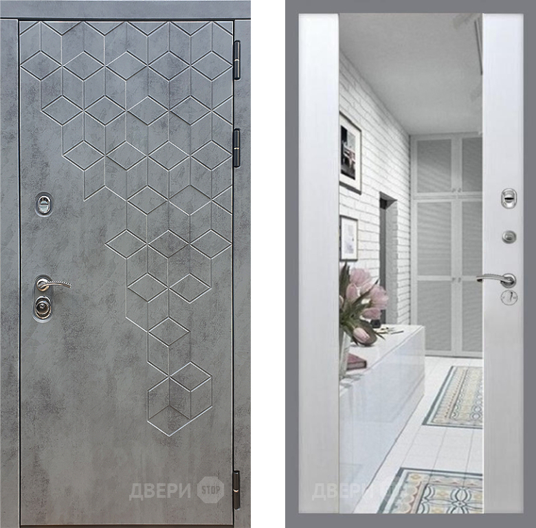 Входная Дверь Стоп БЕТОН Зеркало СБ-16 Лиственница беж 960x2050 мм