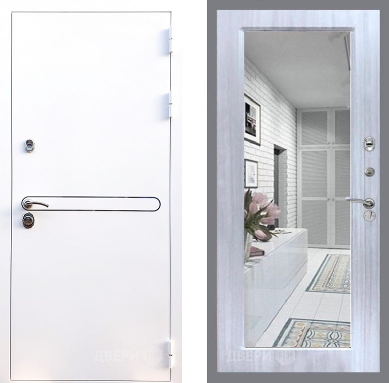 Входная Дверь Стоп Лайн Вайт Зеркало Сандал белый 860x2050 мм