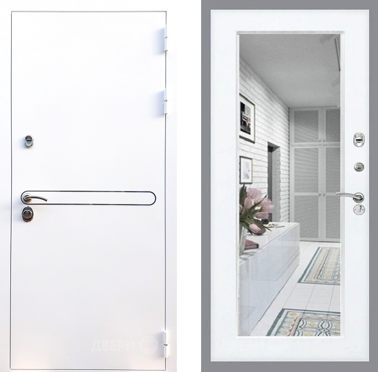 Входная Дверь Стоп Лайн Вайт Зеркало Силк Сноу 960x2050 мм