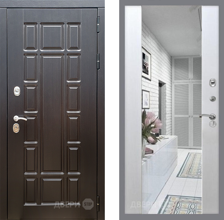Входная Дверь Стоп НЬЮ ЙОРК Зеркало СБ-16 Лиственница беж 860x2050 мм
