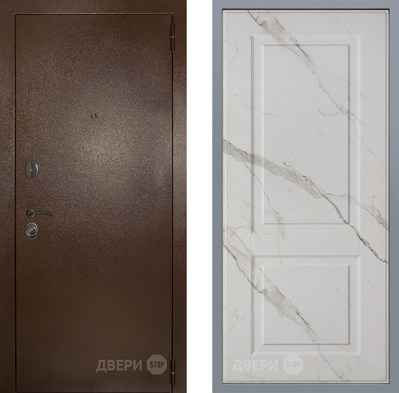 Входная Дверь Заводские двери Эталон 3к антик медь Доррен Мрамор белый 860x2050 мм