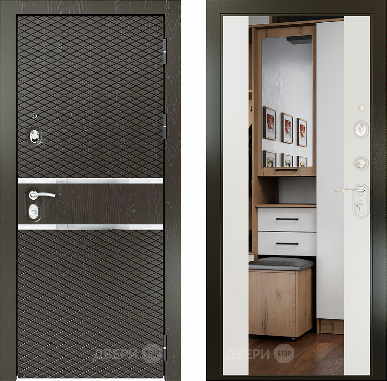 Входная металлическая Райтвер Плаза Шоколад с зеркалом Белый матовый 860х2050 мм